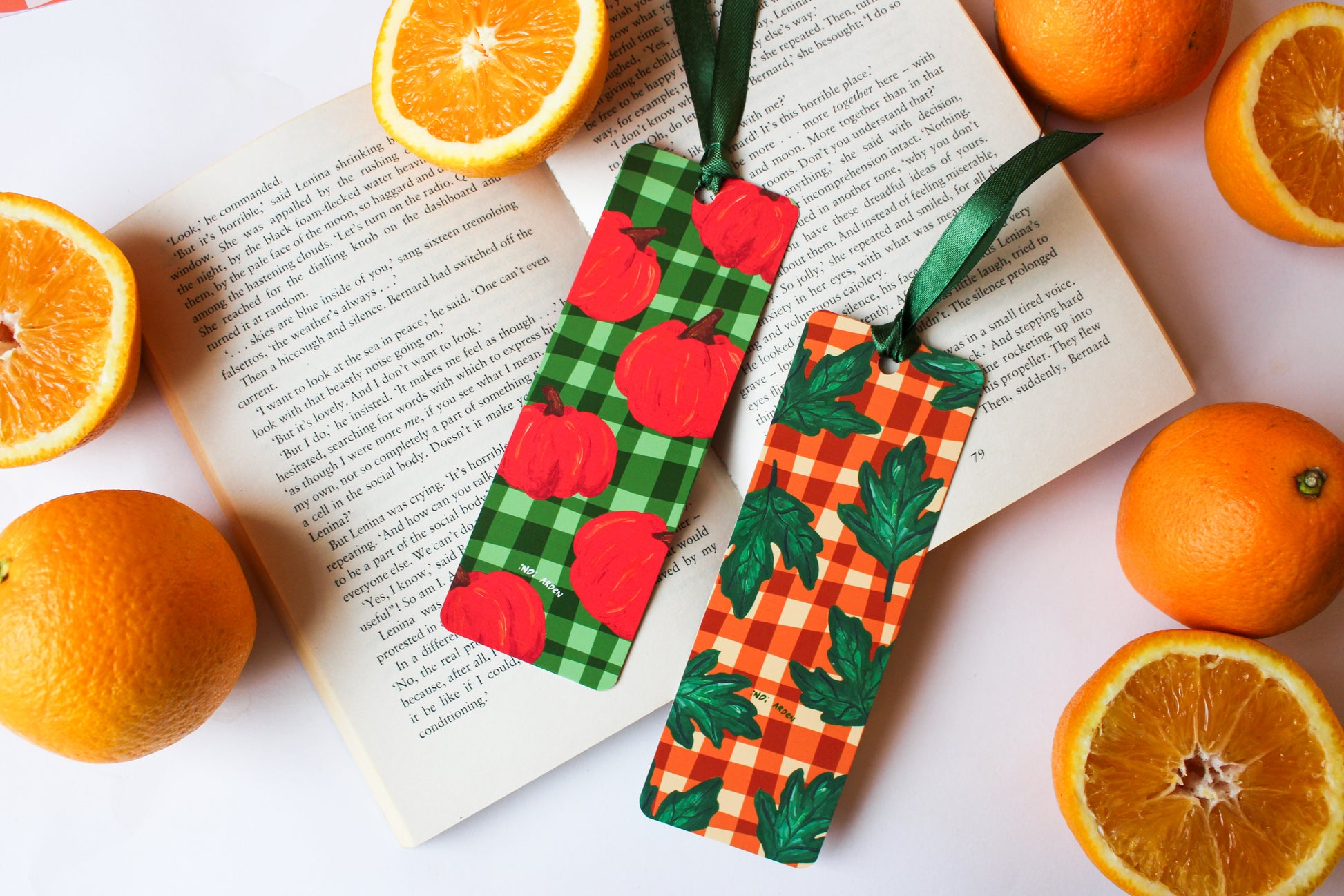 Celebrate cozy autumn reading with these hand-illustrated Autumnal Bookmarks, designed by Indi Arden. Featuring two seasonal designs β Autumn Leaves and Pumpkins β these bookmarks are the perfect companion for your favorite fall reads.