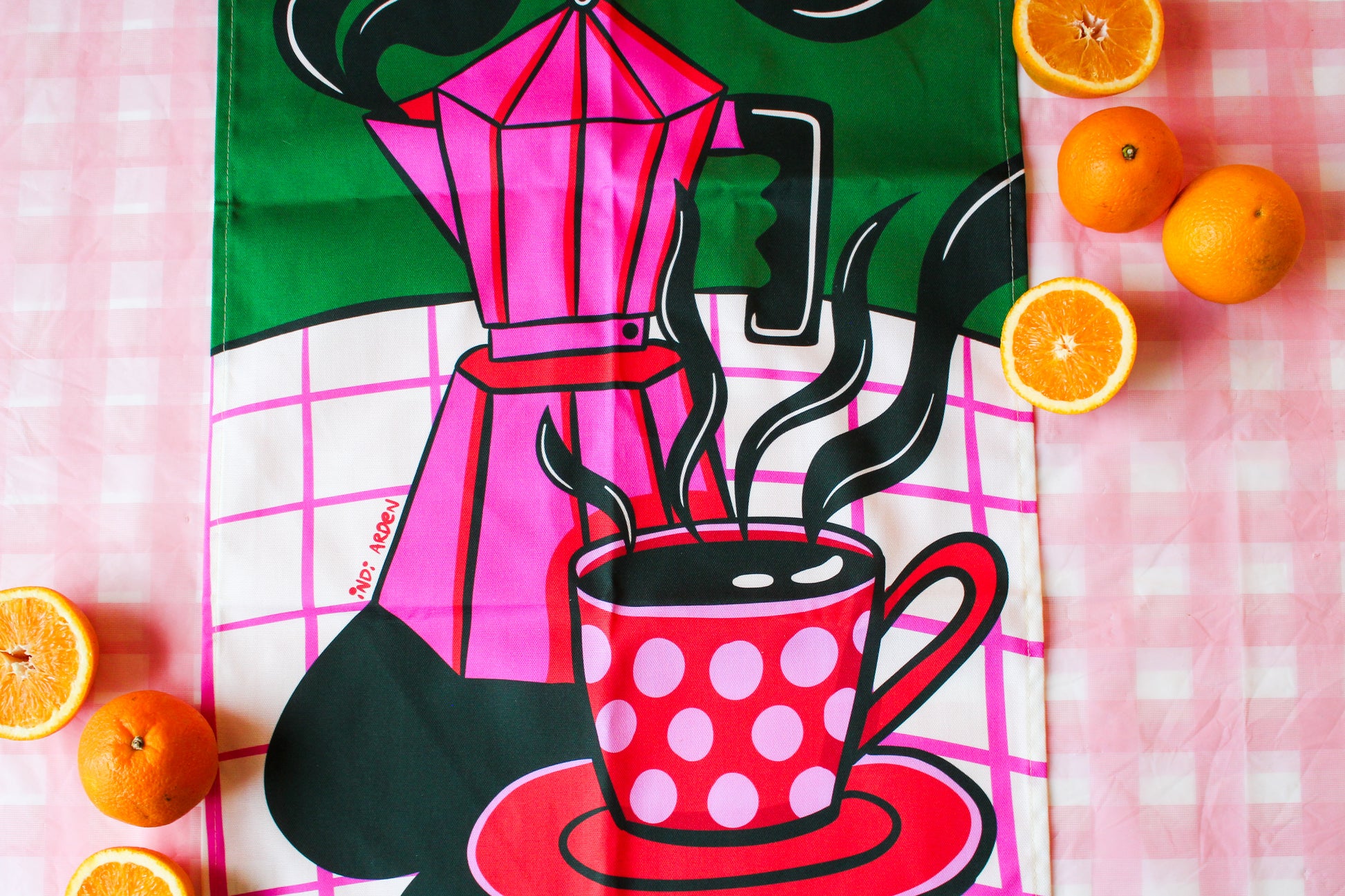 Celebrate your daily brew with this Coffee Tea Towel, illustrated by Indi Arden. Designed for coffee lovers, this towel brings warmth, charm, and a touch of caffeine-inspired creativity to your kitchen.