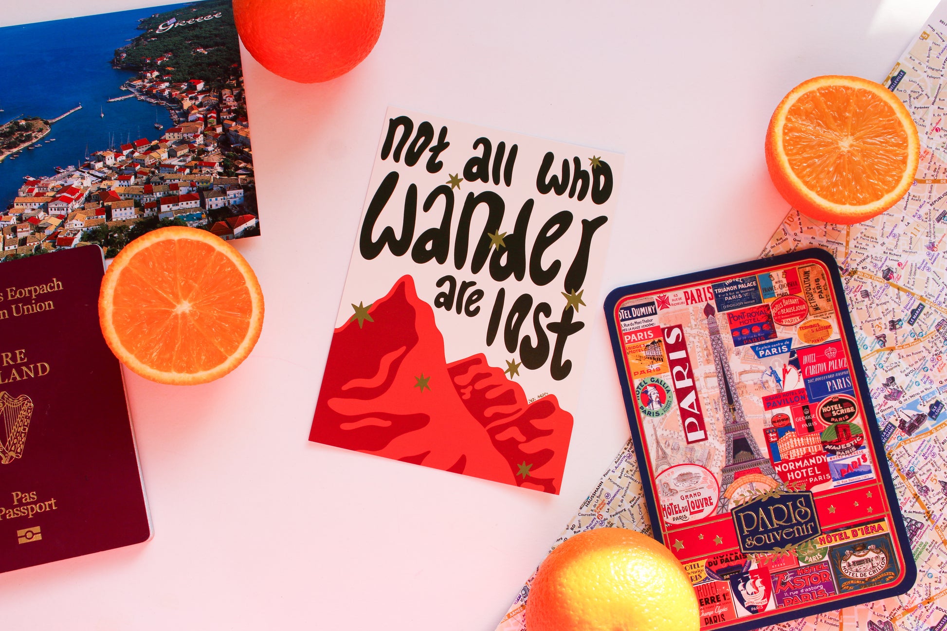 Part of the Wandering Pages Collection, these postcards are designed to capture the feeling of documenting your travels and collecting memories from the places you visit. Each design is inspired by vintage travel ephemera and the joy of marking destinations on a well-loved map.